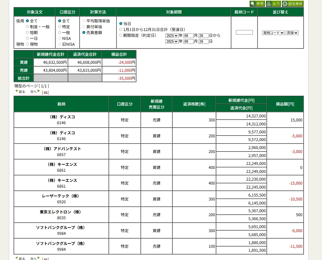 • 両建てもやってる(ディスコ・キーエンス・SBG)