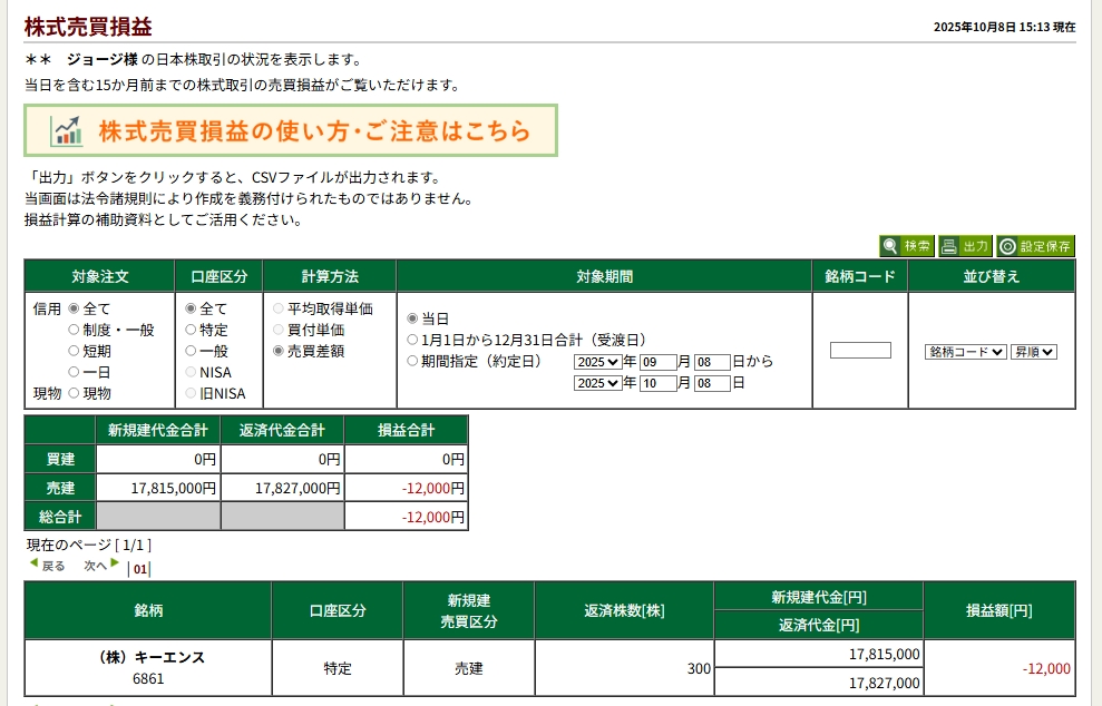 10月8日 | 水曜日 | 1.65 | 47950 | 3227 | 47893 | 1.67 | 4.12 | 151.79 | 62.18 | 6725 | 17.23 |