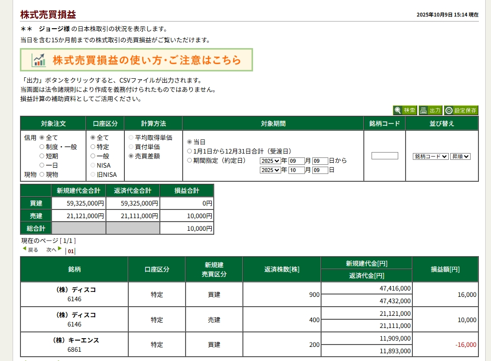 それがよくディスコでは30000プラスでキーエンスのマイナスを埋めて、さらに10000円プラス収支で終われた。