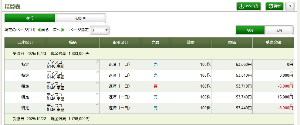 10月17日 | 金曜日 | 1.63 | 48277 | 3203 | 47994 | 1.65 | 3.97 | 150.32 | 57.05 | 6556 | 25.30 |