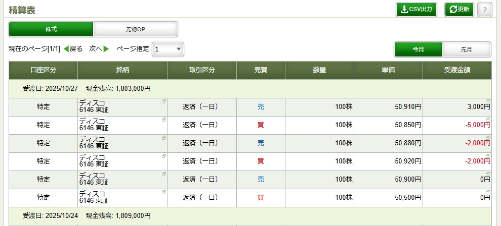 10月17日 | 金曜日 | 1.63 | 48277 | 3203 | 47994 | 1.65 | 3.97 | 150.32 | 57.05 | 6556 | 25.30 |