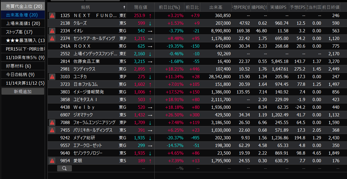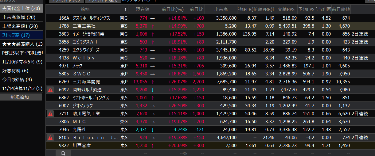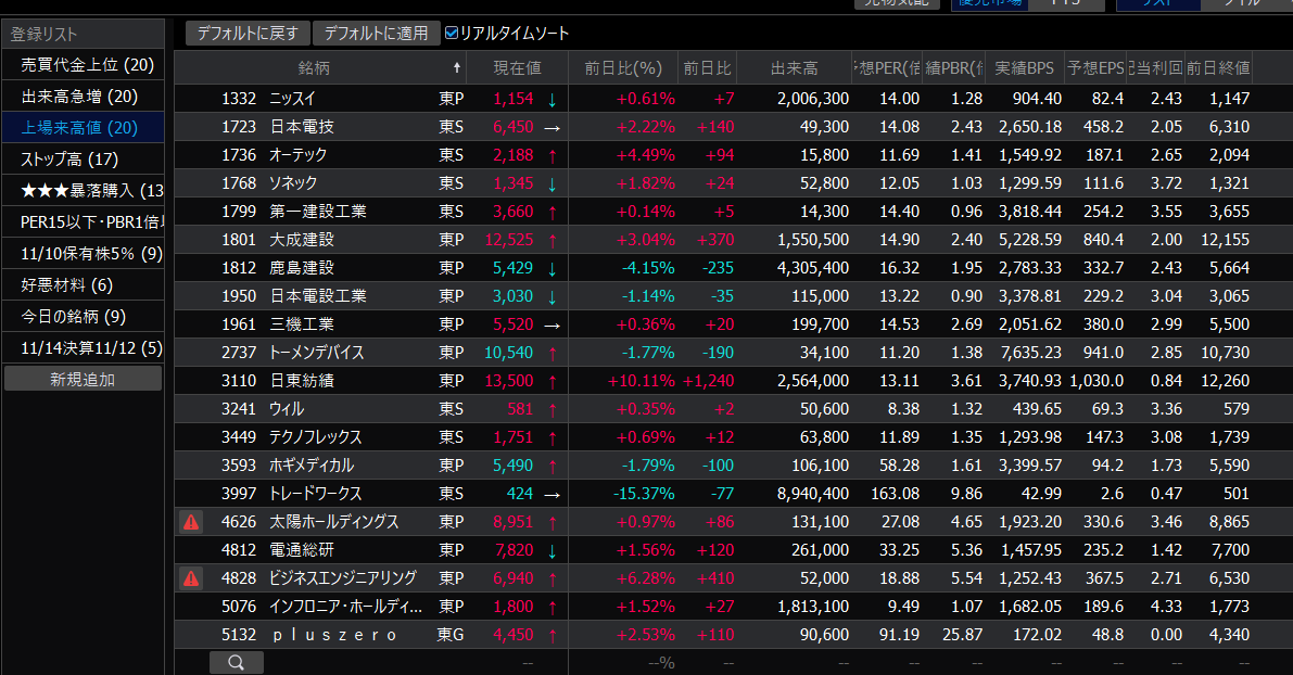 上場来高値更新銘柄をどうトレードに活かせばいいのか試行錯誤が続く。11月のこの時期で高値を更新するということは、本当に強いと感じが…。それと同時にいつ調整が入ってもおかしくないとも思う。
