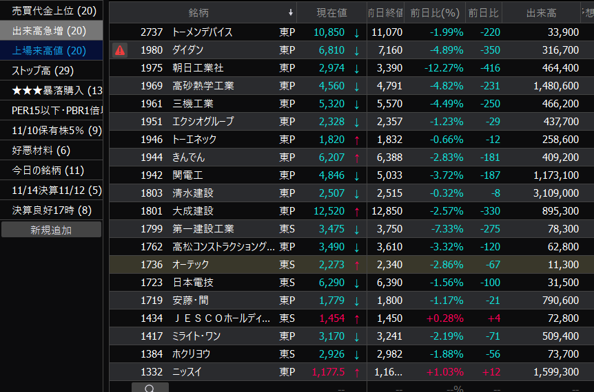 - 日経平均が軟調でも、設備・土建業は逆行高で資金が集中