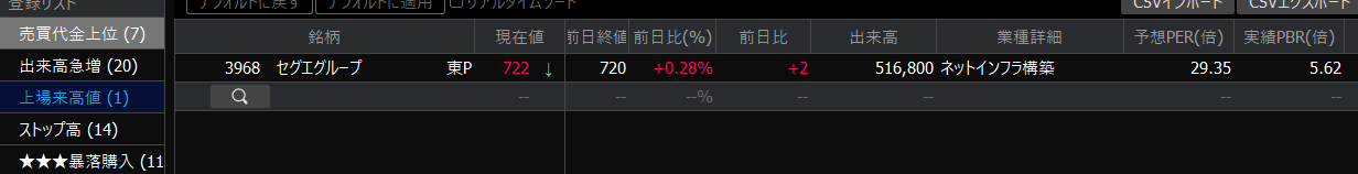 朝の寄り付きで上場来高値更新してからじりじり下がるパターン。