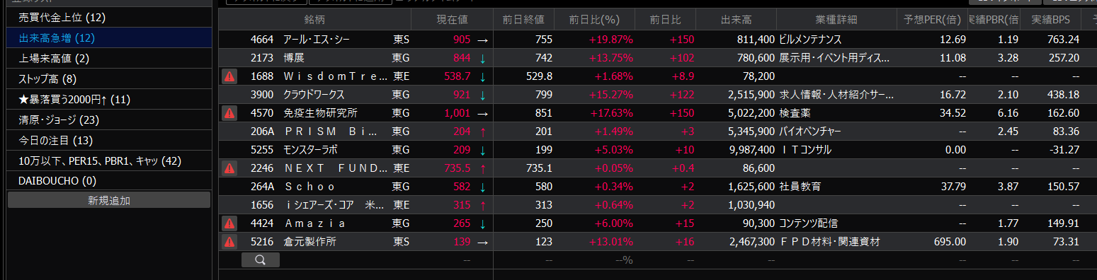 🔍 出来高急増+上昇銘柄(スクショ限定)