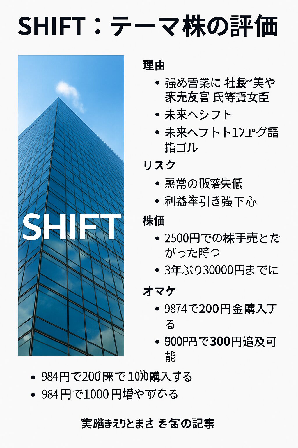 • 社名「SHIFT」=未来へシフトする → 成長ストーリーと一致