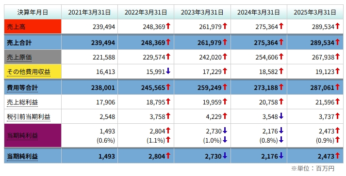 物流・人件費が重く、スケールメリットがほぼ出ない。 - 純利益率