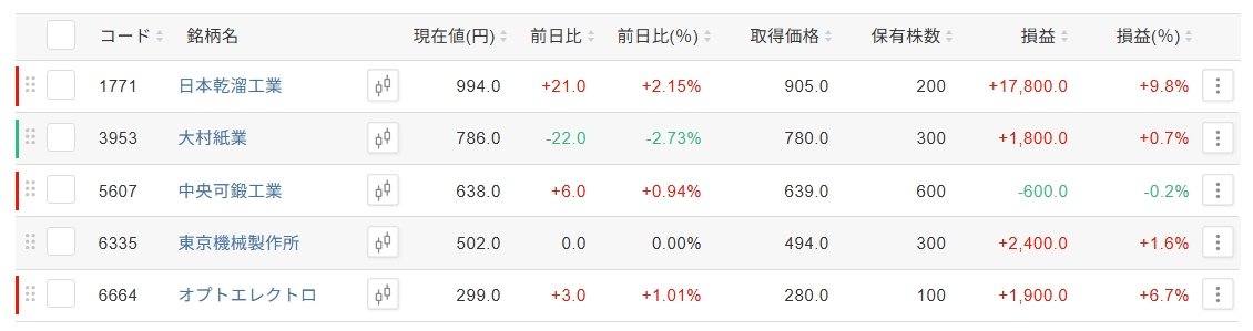 現在の保有銘柄