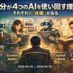 投資家として毎日AIを使い倒しているが、1つに絞るという発想はない。 ChatGPT Gemini Copilot Claude ——この4つをそれぞれ別の「参謀」として使い分けている。 Ǵ ...