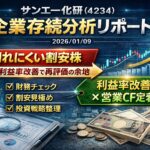 【2026年1月時点 投資判断アップデート】 結論 サンエー化研は「倒れにくい割安株」ではあるが、現時点では下値を強く支える水準のネットキャッシュには達しておらず、利益率改善が継続した場合に再評価され ...